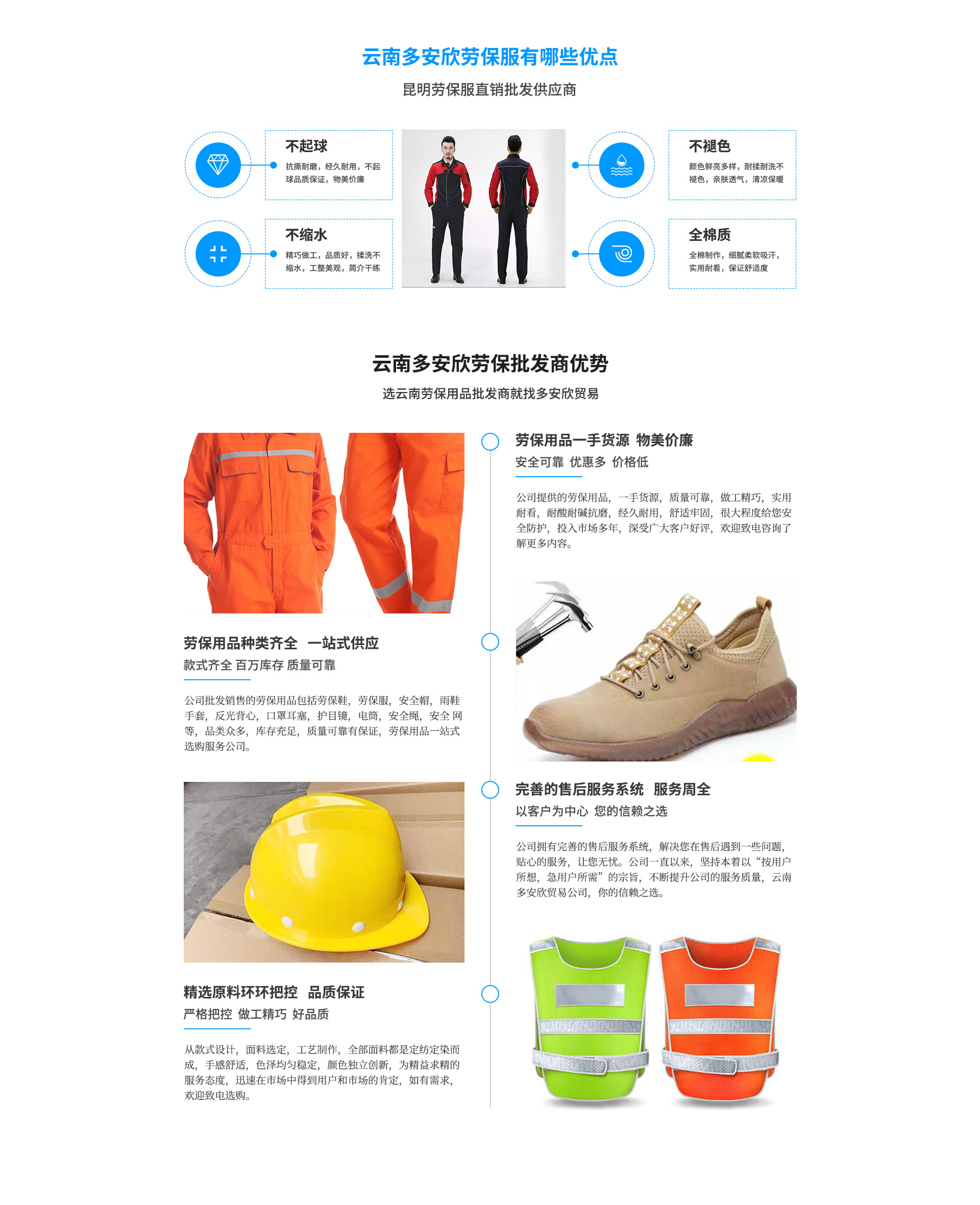 云南多安欣貿易有限公司位于云南省昆明市官渡區昌宏路東聚五金建材市場東區10-10。云南多安欣貿易有限公司是一家集生產。銷售、批發為一體的大型勞保用品單位。公司成立18年有余,在這18年里我們憑借我們行業知識,認真的態度和售后服務,在云南市場迅速崛起,同時代理銷售國內外各優良廠商(普通、特種)勞動防護用品。安全防護用品,公司現有員工15人,公司一直以來,堅持本著以“按用戶所想,急用戶所需”的宗旨,從款式設計,面料選定,工藝制作,為精益求精的服務態度,迅速在市場中得到用戶和市場的肯定,公司經營品種達到一萬余種,包含了勞保用品的各個系列,如定制工裝、頭部防護,呼吸防護,勞保鞋,電力物資雨衣類眼臉部位防護,3m系列,墜落安全防護,交通安全設施電筒類多功能防護服、防塵防毒。耐酸堿。耐油,耐高溫,防寒,阻燃,隔熱,氣體監測,絕緣防靜電,防砸高空墜落,救護,逃生,等特種勞保用品,如(彩條布,吊帶軟梯噸袋安全帽,...